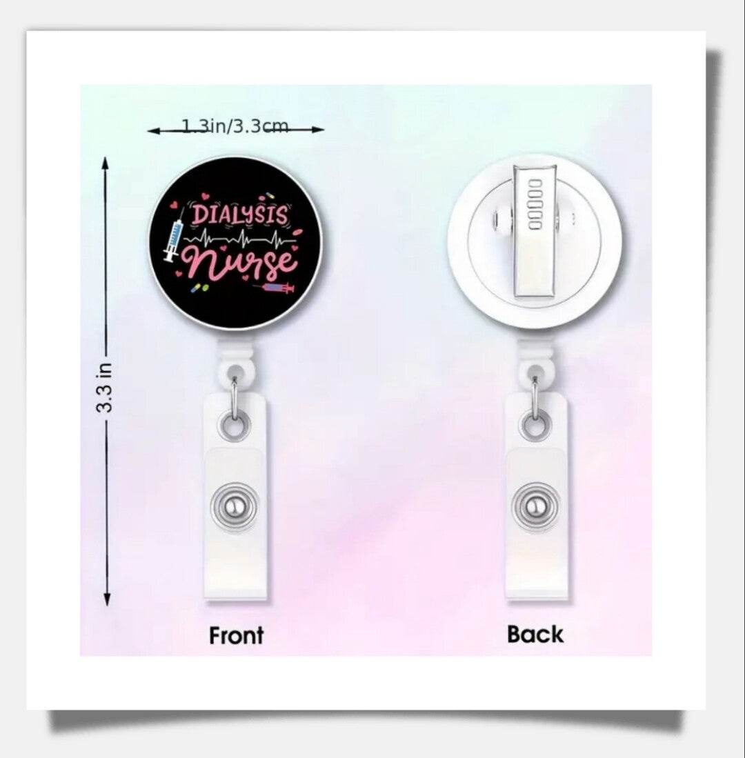 Often adorned with symbols related to kidneys or medical care, the badge reel serves as a visual reminder of the nurse's commitment to promoting health, hope, and resilience in individuals who rely on dialysis for survival.